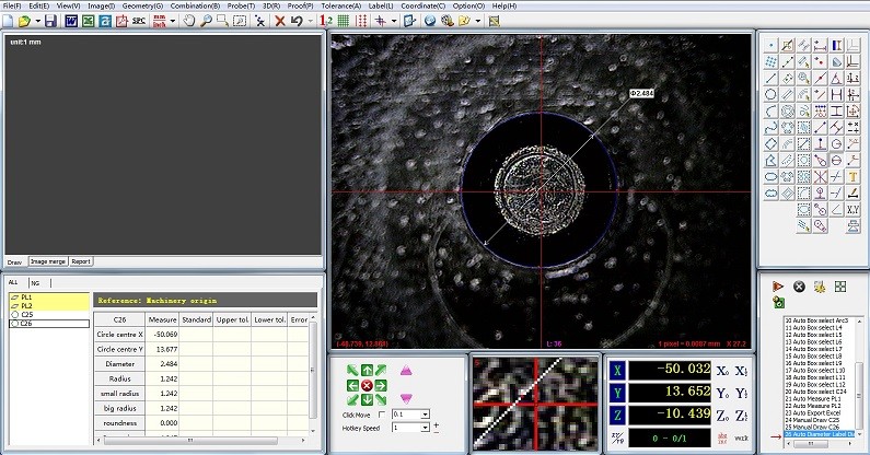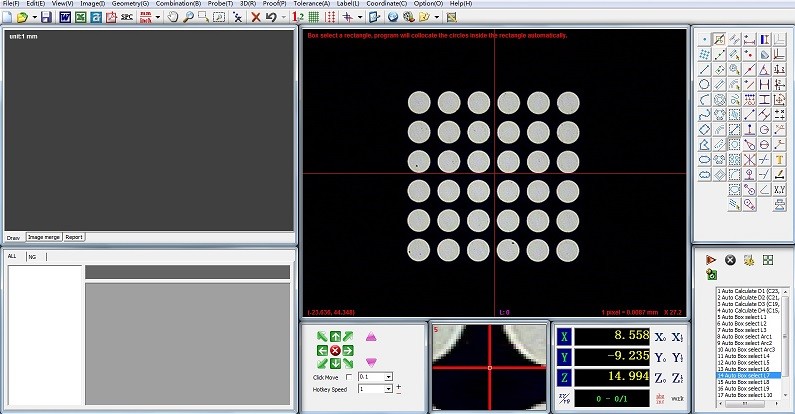 ऑटो फ़ोकसिंग, स्वचालित मापन, मैट्रिक्स मापन, और DXF फ़ाइल आयात भाग छवियों या मापी गई ग्राफिक्स के साथ तुलना के लिए।